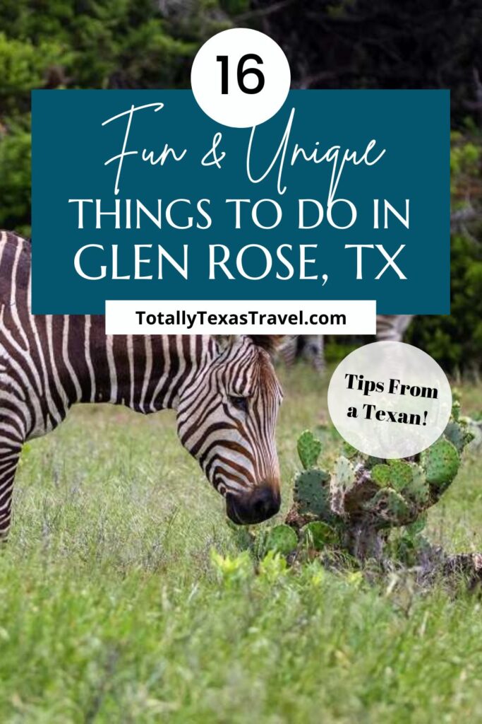 Glen Rose, TX boasts a fun wildlife safari, some great State Parks, and loads of fun restaurants.